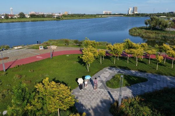 近日,白露节气刚过,中新天津生态城中新友好花园迎来最美初秋。闲暇时分的公园里,人们纷纷走出家门,拥抱炎夏褪去后的凉爽惬意。